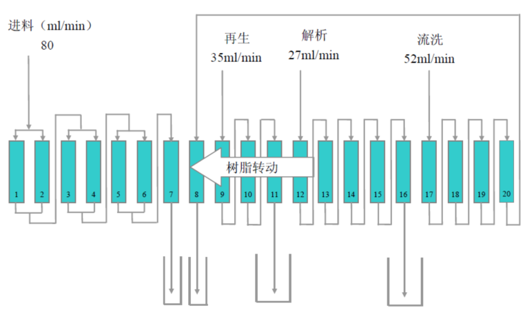 甜菊糖FMT連續(xù)離子交換系統(tǒng)的流程圖如下: