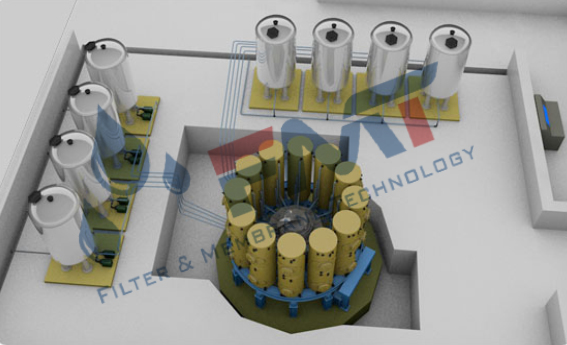 1、主機(jī):包括系統(tǒng)支撐、樹脂柱、閥芯。支撐固定部分作為整個(gè)連續(xù)離交系統(tǒng)的支撐結(jié)構(gòu),采用均勻分布的形式;閥芯主機(jī)作為連續(xù)離交的核心部分,采用福美科技自有知識(shí)產(chǎn)權(quán)多孔分配閥技術(shù),專利密封,用于連接外部物料進(jìn)出,實(shí)現(xiàn)功能分區(qū);樹脂柱作為交換容器用于填裝樹脂(或其他交換載體);